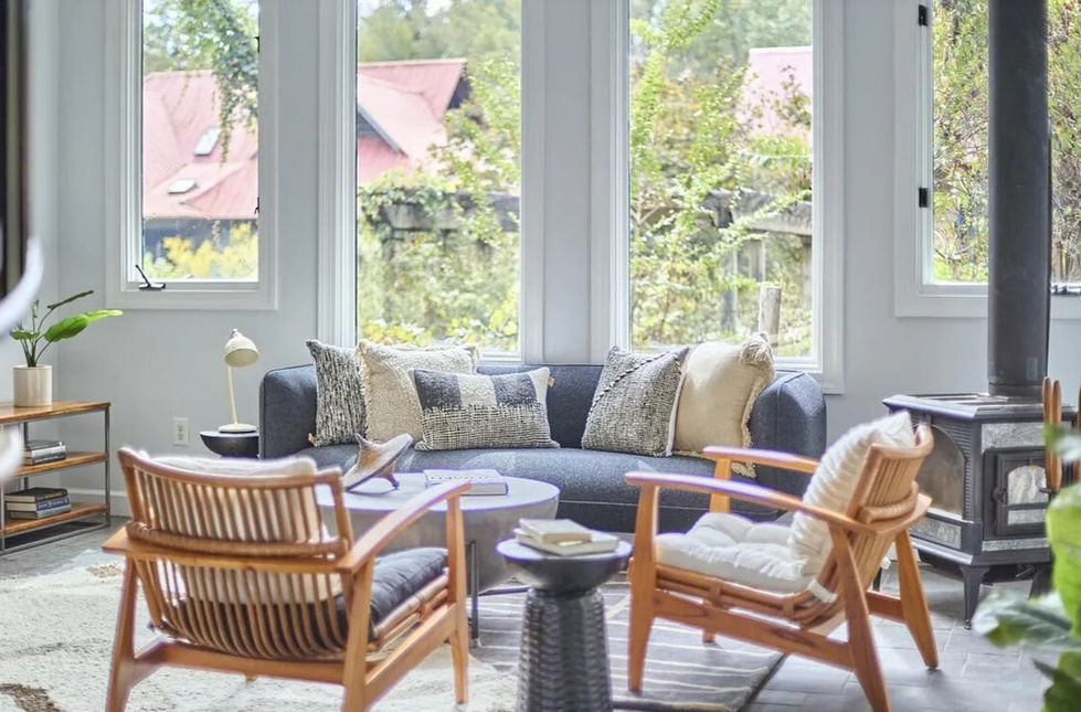 This mid-century modern home perfectly showcases how strategic staging can honor architectural heritage while creating fresh, livable spaces. We embraced the home's standout features: those soaring vaulted ceilings, warm wood accents, and abundant natural light, and built our design story around them. The living room is really where this stage shines. With those dramatic cathedral ceilings and stunning windows flooding the space with light, we took a playful approach by layering rugs to complement the room's unique angular architecture. The sunroom's bold mauve walls were a calculated risk that beautifully complements the natural wood trim and creates an unexpected wow moment. In the office, we kept things clean and functional with a glass desk that doesn't compete with the skylight above, while vibrant abstract art adds personality without overwhelming the space. The bedroom staging balances sophistication with comfort through botanical prints and thoughtfully layered textiles. And that kitchen island with its organic curved edge? It's already a statement piece. We just gave it the modern seating and styling it deserved. Each room tells a cohesive story that respects the home's original mid century design while speaking to how people actually want to live today. This project is a great example of staging that elevates a property's appeal by working with its strengths, not against them.